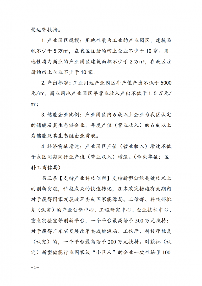 《征求意見稿》中明確,對新引進、固定資產投資5000萬元以上的優質新型儲能制造業項目,按固定資產投資總額的10%給予扶持,單個項目最高1億元。