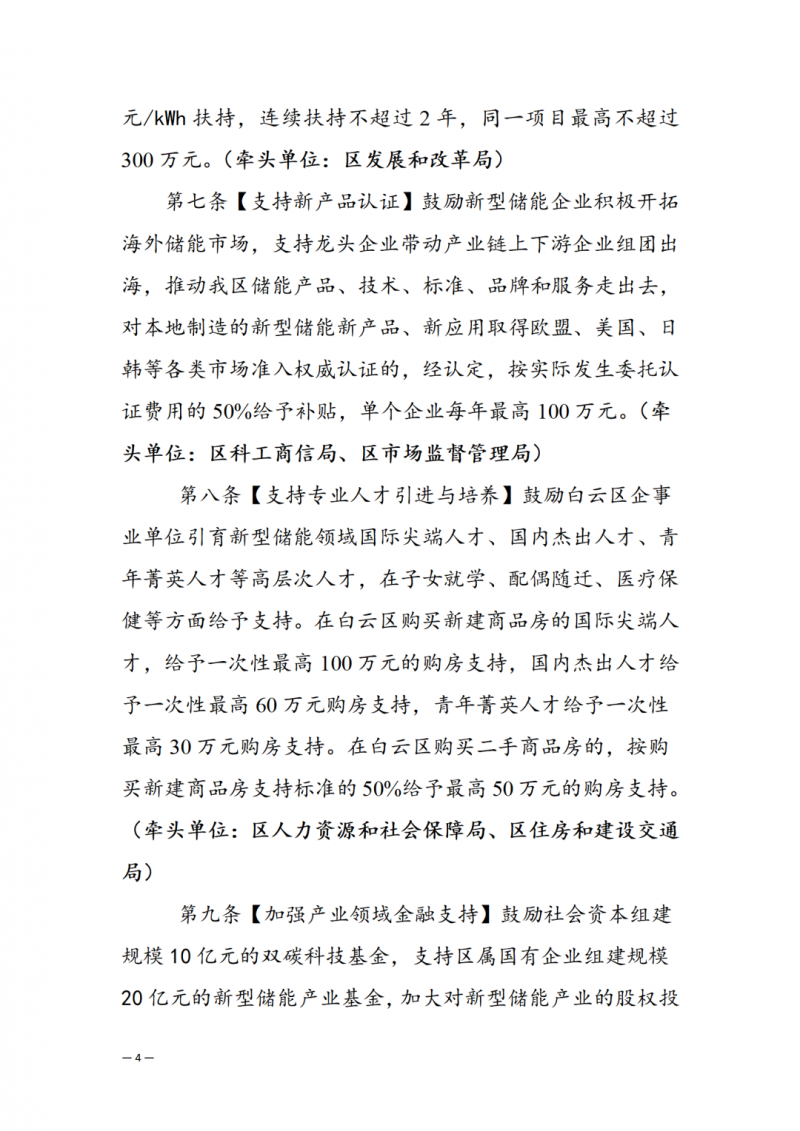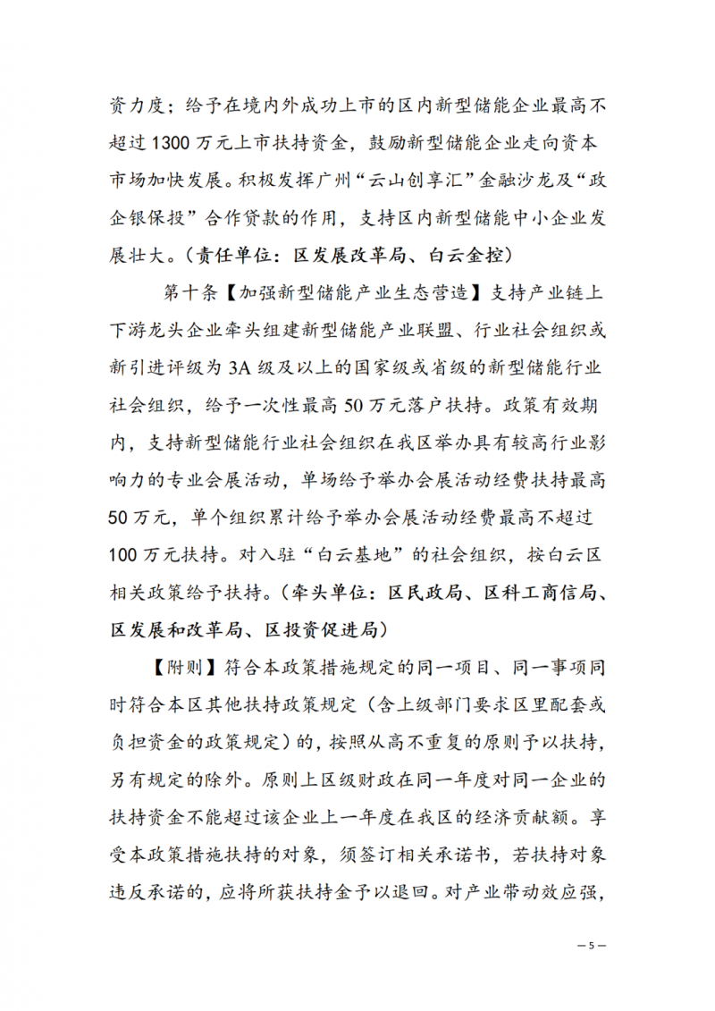 廣州白云區:儲能制造補助最高1億元,兩種技術以上用戶側儲能最高0.2元/kWh