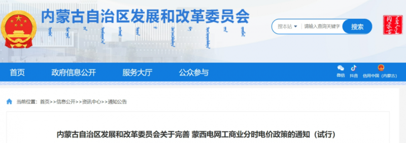 內蒙古自治區發改委關于完善蒙西電網工商業分時電價政策