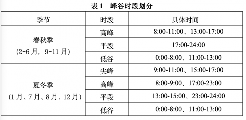 統一大工業電價用戶和一般工商業電價用戶峰谷時段,具體時段劃分如下表。