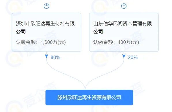 股權穿透顯示,該公司由欣旺達(300207)旗下深圳市欣旺達再生材料有限公司、山東信華民間資本管理有限公司共同持股。