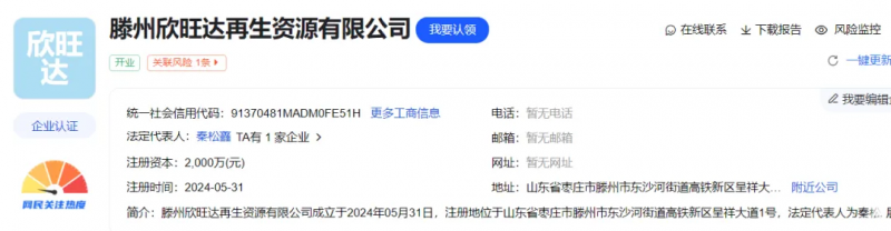近日,滕州欣旺達再生資源有限公司成立。