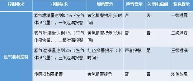 氫系統的安全設施主要功能如下: