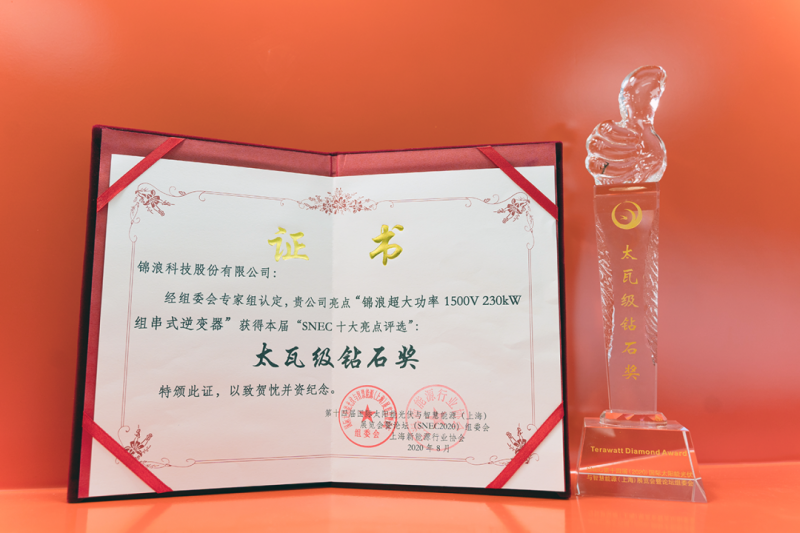 錦浪科技榮獲SNEC2020最高獎項——太瓦級鉆石獎
