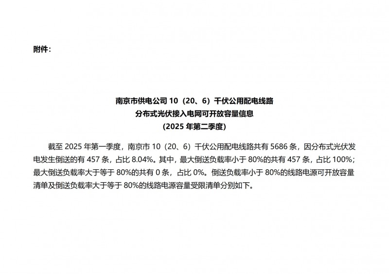 附件:南京市分布式光伏接入電網(wǎng)可開放容量信息(2025年第二季度)