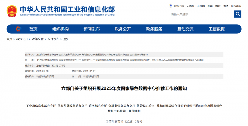 7月7日,工信部、發改委等六部門聯合發布《關于組織開展2025年度國家綠色數據中心推薦工作的通知》(簡稱“通知”)。