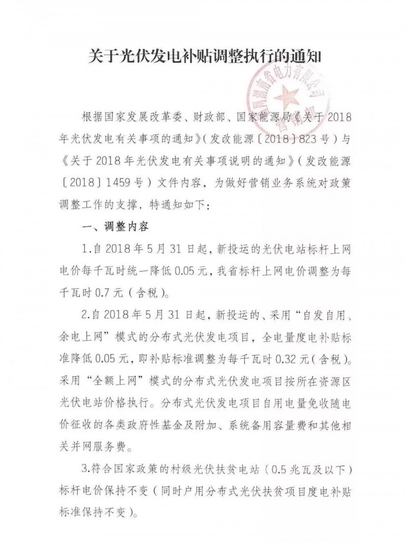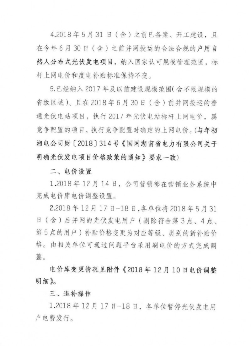 12月10日,國家電網湖南電力有限公司營業部及財務部聯合下發關于光伏發電補貼調整執行的通知,通知規定: