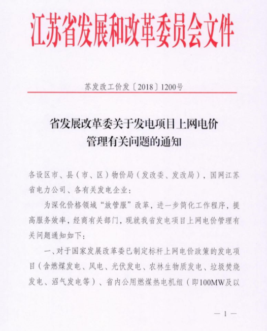 江蘇發改委關于發電項目上網電價管理有關問題的通知
