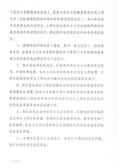 、農林生物質發電、垃圾焚燒發電、沼氣發電)、省內公用燃煤熱電機組,不再發文明確具體項目的上網電價。詳情如下: