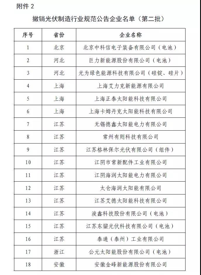 2、撤銷光伏制造行業(yè)規(guī)范公告企業(yè)名稱(第二批)