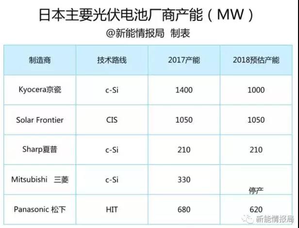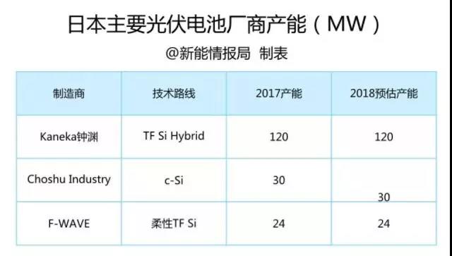 根據日本2018年11月發布的《PV Activities in Japan and Global PV Highlights》報告中的數據,制作了日本主流光伏電池廠商的本土產能數據表,希望能對大家有所幫助。