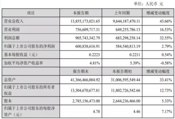 中環股份業績簡報顯示,2018年,公司實現營業總收入138.55億元,較上年同期同比增長43.66%;營業利潤7.57億元,同比增長16.53%;實現歸屬于上市公司股東的凈利潤6.01億元,較上年同期同比增長2.79%;基本每股收益0.2223元,同比增長0.54%。具體財務指標如下: