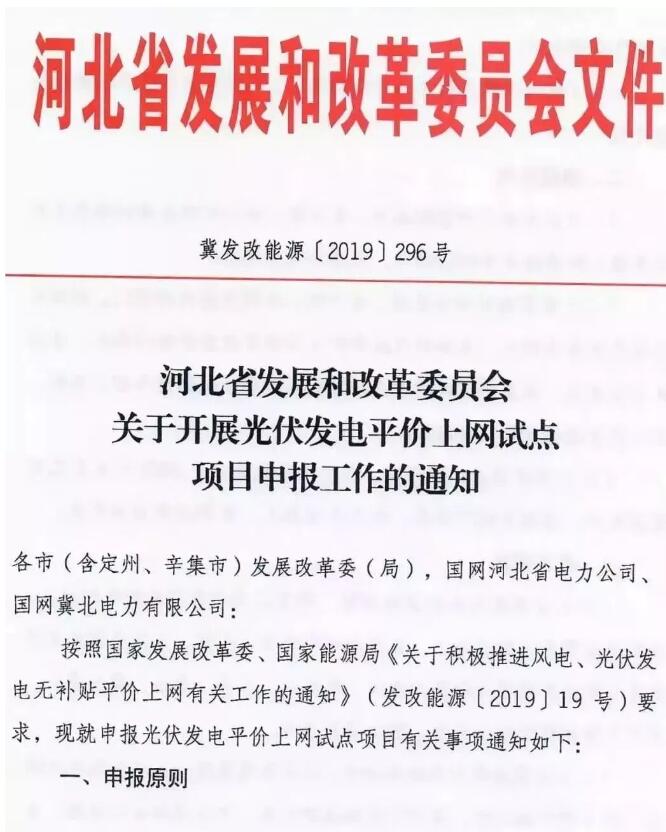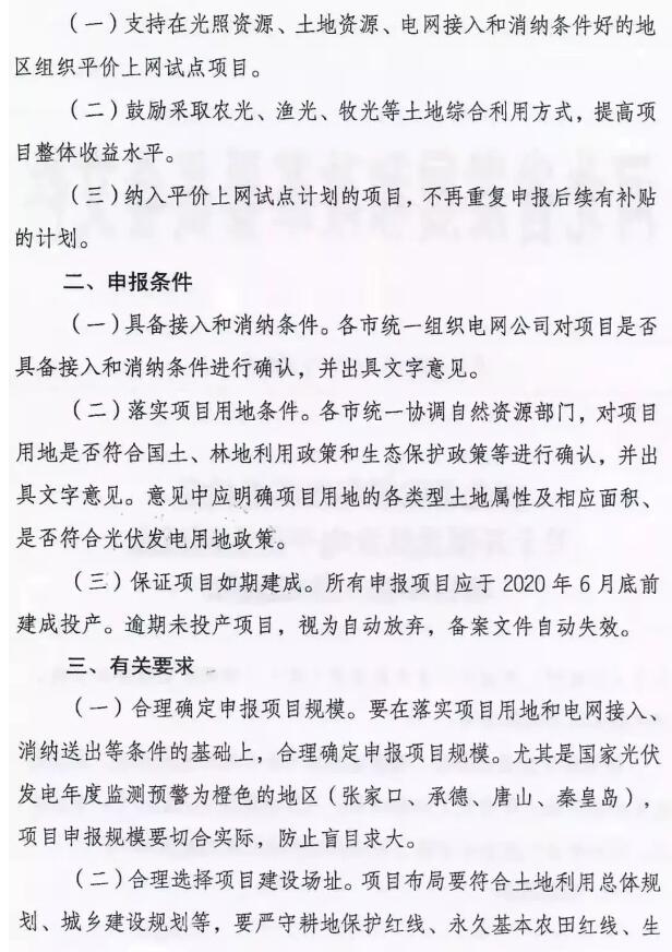 四、河北:3月31日前上報(bào)光伏發(fā)電平價(jià)上網(wǎng)試點(diǎn)項(xiàng)目