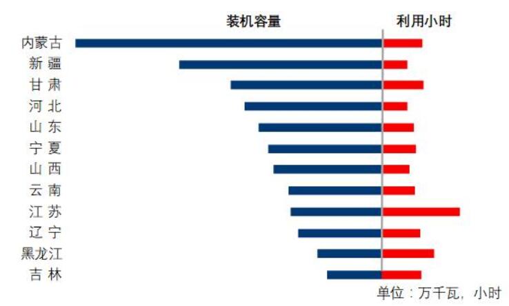 圖5 1-2月份風電裝機較多省份風電裝機容量和設備利用小時