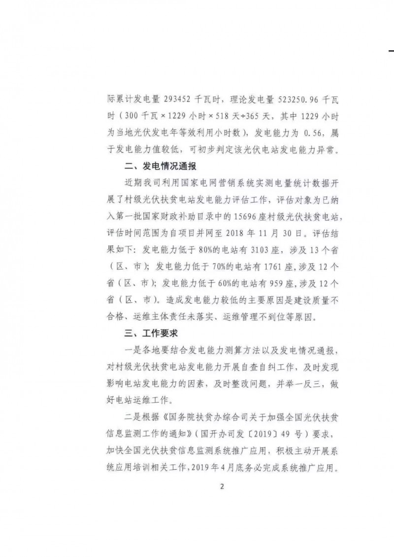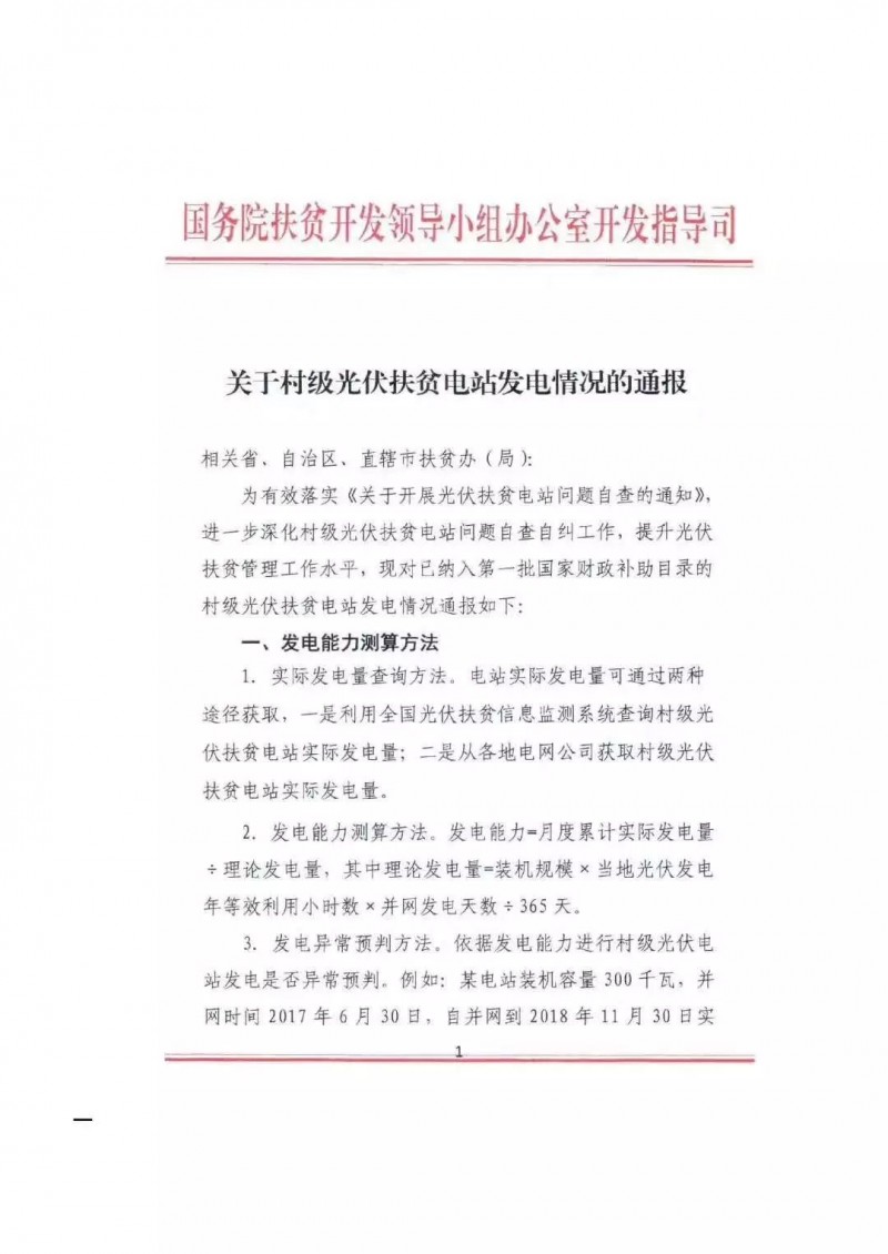 4月1日,國(guó)務(wù)院扶貧辦開(kāi)發(fā)指導(dǎo)司發(fā)布了《關(guān)于村級(jí)光伏扶貧電站發(fā)電情況的通報(bào)》,通過(guò)利用國(guó)家電網(wǎng)營(yíng)銷系統(tǒng)實(shí)測(cè)電量統(tǒng)計(jì)數(shù)據(jù)對(duì)已納入第一批國(guó)家財(cái)政補(bǔ)助目錄的村級(jí)光伏扶貧電站開(kāi)展了發(fā)電能力評(píng)估工作,評(píng)估對(duì)象包含15695座村級(jí)光伏扶貧電站,評(píng)估時(shí)間范圍為自項(xiàng)目并網(wǎng)至2018年11月30日。