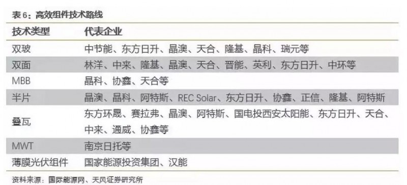 各廠商加速布局高效組件技術,包括疊瓦、雙面、半片、雙玻、MBB多主柵、MWT、薄膜光伏等。2018年中期時中國光伏行業協會秘書長王勃華介紹,2017年半片組件產能1.1GW,產量367MW,2018年規劃產能達到9.6GW;雙玻組件2017年產量2.6GW,2018年預計增至13.4GW;疊瓦組件2017年產能為900MW,但產量僅91MW,2018規劃產能達1.2GW。