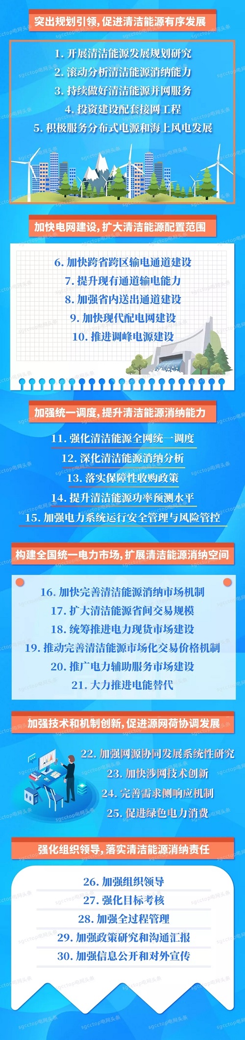 公司將堅決貫徹黨中央、國務院決策部署,落實《清潔能源消納行動計劃(2018——2020年)》各項重點工作,按照“三型兩網”世界一流能源互聯網企業建設要求,圍繞引導清潔能源有序發展、加快電網建設、加強統一調度、擴大交易規模、加強技術和機制創新、強化組織領導等6大方面,實施30項重點工作。