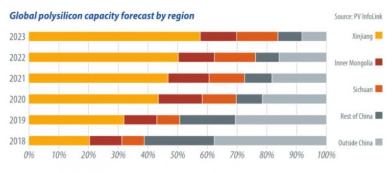 到目前為止,全球多晶硅產能已達到119,000公噸(MT),比2018年第四季度的10.6萬噸增加了12%。年底中國西部和西北部的新增產能將占全球多晶硅產能的一半。