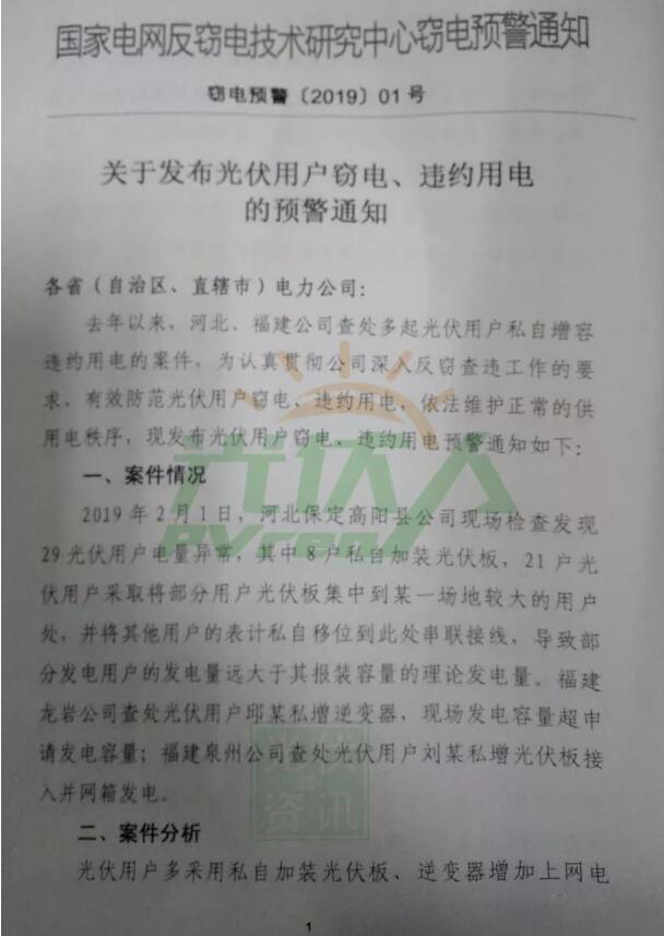 近日,國家電網發布《光伏用戶竊電、違約用電的預警通知》,指出光伏用戶私自加裝光伏板、逆變器增加上網電量,騙取光伏發電補貼,要求各地進行嚴查。