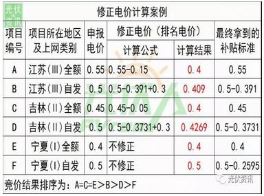 4.國家能源局根據修正后的申報補貼項目上網電價報價由低到高排序遴選納入補貼范圍的項目。修正規則為:
