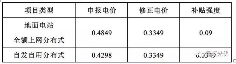 如果某項目的申報電價為0.4097元/kWh,則修正后電價為0.2597元/kWh。