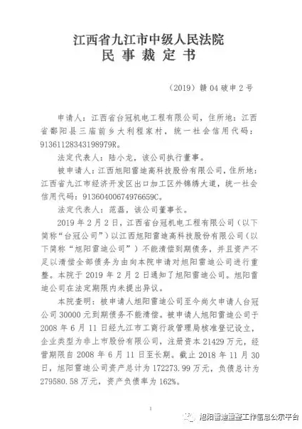 ,也不會是最后一家破產重整的光伏企業,旭陽雷迪雖然欠著銀行的錢,也欠著供應商的貨款,但是他欠員工的社保和工資已經交清,大名鼎鼎的賽維至今還欠著09年、10年的員工的社保沒交。
