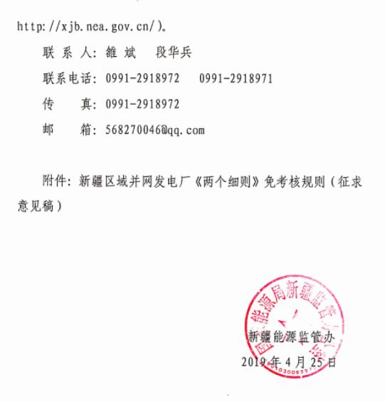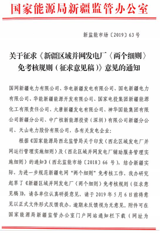 《新疆區域并網發電廠〈兩個細則〉免考核規則(征求意見稿)》印發
