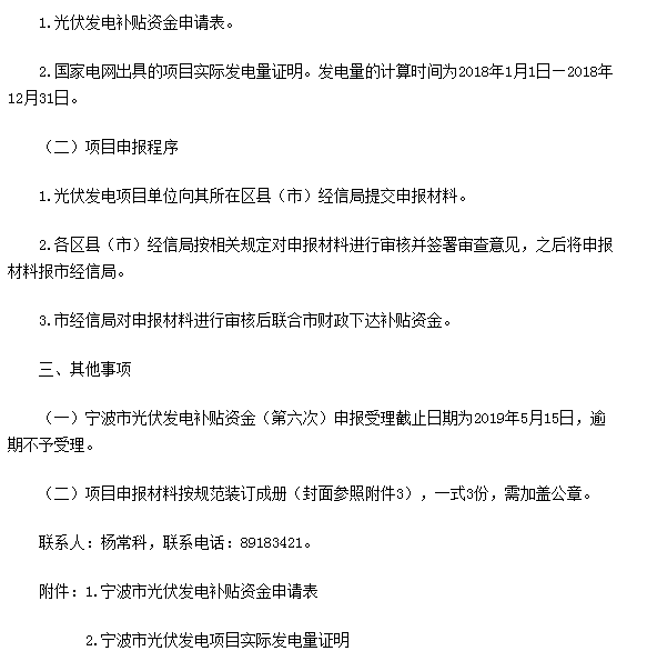 寧波市光伏發(fā)電補(bǔ)貼資金 (第六次)申報(bào)工作的通知