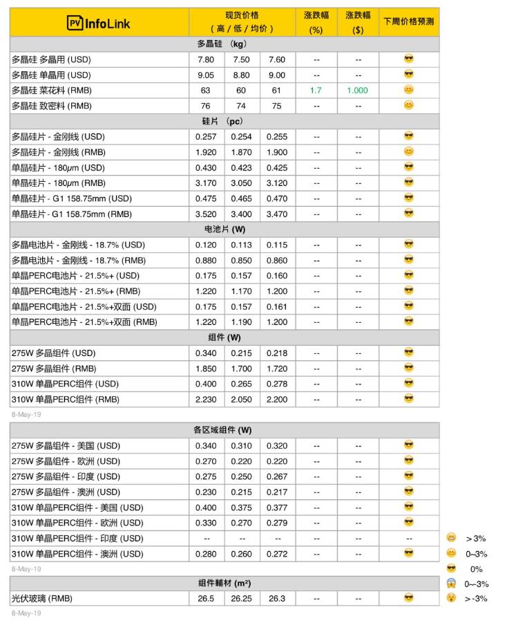 本周光伏供應(yīng)鏈價(jià)格(5月9日)