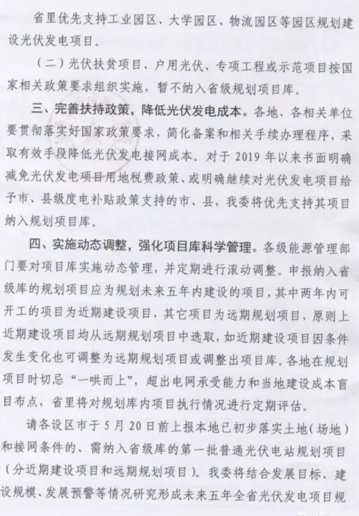 前期工作管理的通知》,嚴控地面電站及分布式光伏,無論是否需要補貼均需納入規劃。要求5月20日前,上報本地已初步落實土地(場地)和接網條件、需納入省級庫的第一批普通光伏電站規劃項目。