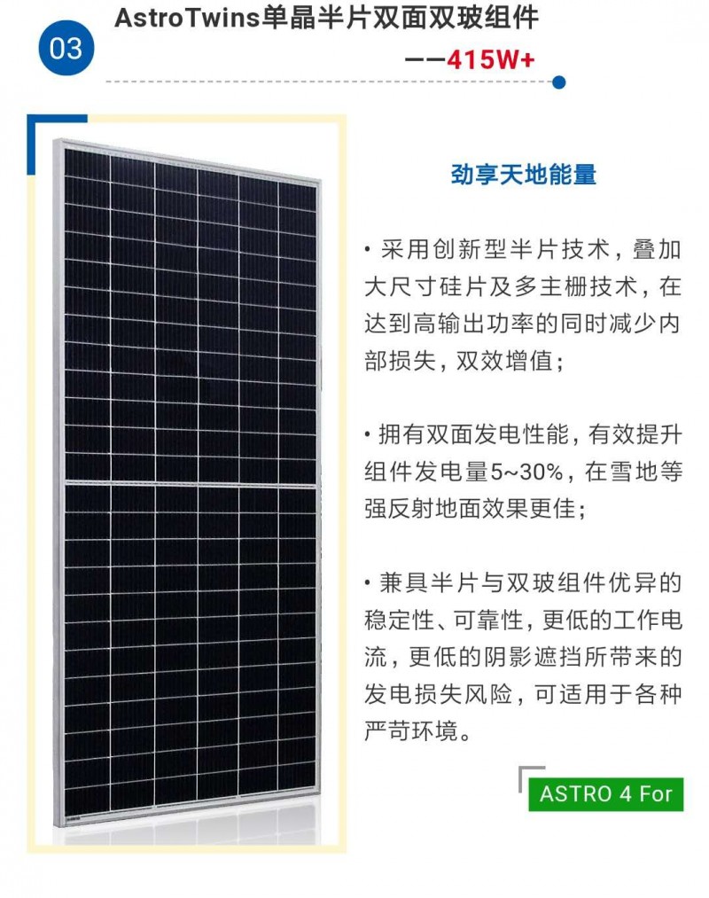 ,現場還將展出有更多半片組件、全黑單晶組件、智能組件以及常規組件,滿足不同場景需求。