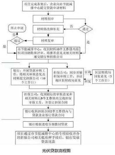 項目完成備案后,攜帶自然人身份證明、個人資產證明或企業經營執照、公司章程、近三年財務審計報告、項目備案、電網接入批復、用地或屋頂租賃協議、電力購買協議、能源管理合同等有關文件向市節能減排中心提交貸款申請材料。