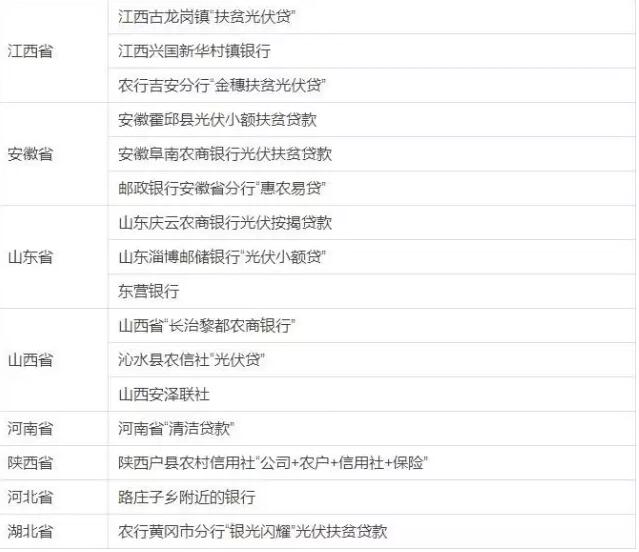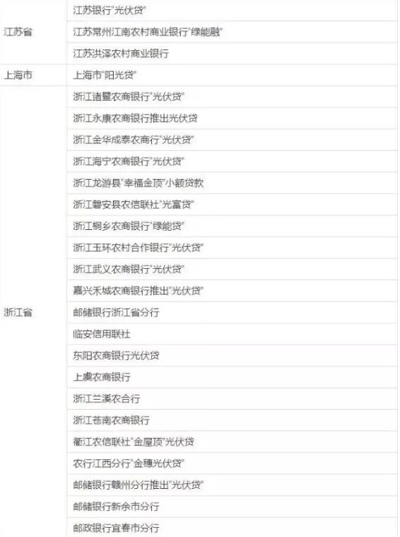 各省市光伏貸銀行表
