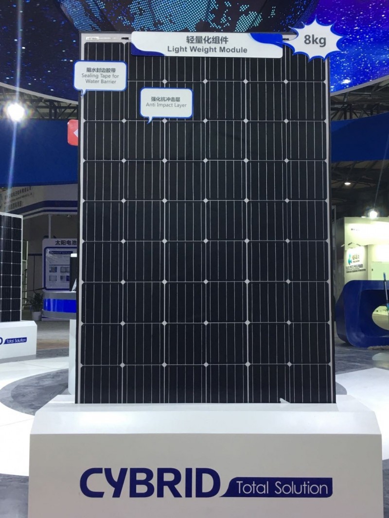 賽伍展出一款重量僅8.5kg 的組件,吸引了大量觀眾駐足。據(jù)了解,此設(shè)計采用高強(qiáng)度透明前板取代了玻璃,具有輕量化、已安裝、易回收的特點。