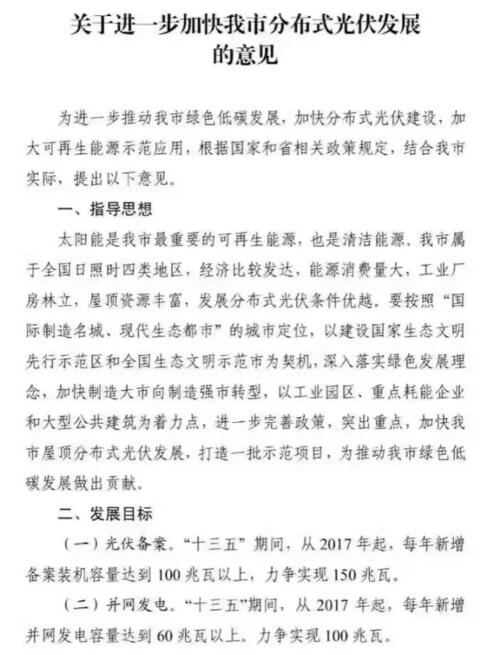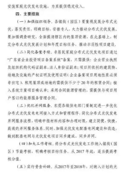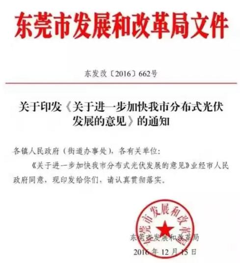 東莞發(fā)改于2016年12月15日印發(fā)《關于進一步加快我市分布式光伏發(fā)展意見》的通知,為“十三五”期間光伏發(fā)展指定規(guī)劃,目標力爭自2017年起每年新增150MW光伏裝機備案,并提出以下要求:
