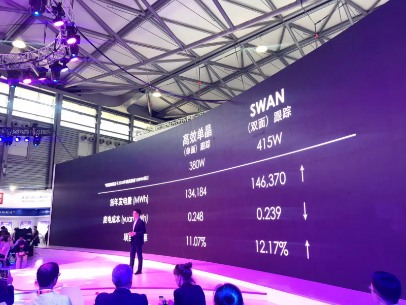 與此同時,更為輕盈的Swan組件也令安裝過程變得更加便捷,由此也有效帶動了系統成本的下降,并可為投資者最大程度降低度電成本,帶來更高的投資回報率?;谶@種種優勢,Swan透明背板雙面組件作為唯一的組件產品,成功斬獲2019年Intersolar 光伏大獎。