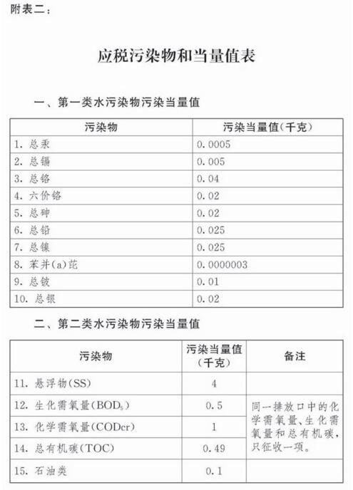 (二)應稅水污染物按照污染物排放量折合的污染當量數確定;