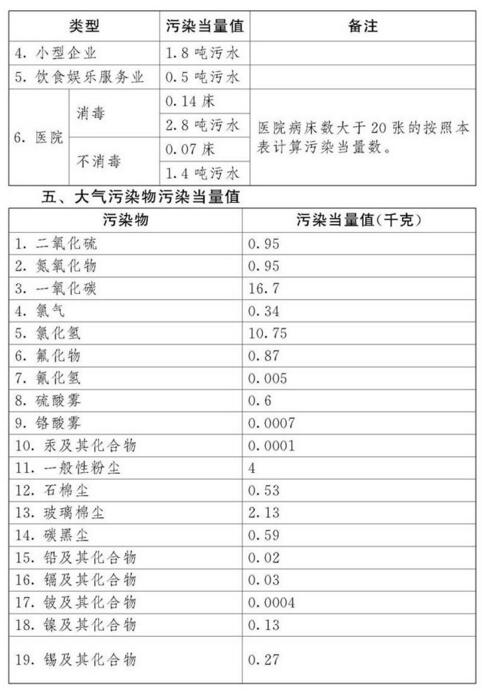 (一)污染當量,是指根據污染物或者污染排放活動對環境的有害程度以及處理的技術經濟性,衡量不同污染物對環境污染的綜合性指標或者計量單位。同一介質相同污染當量的不同污染物,其污染程度基本相當。