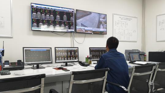 圖為“十三五”20兆瓦光伏扶貧電站中控監(jiān)測站正在進行實時監(jiān)測。 高康迪 攝