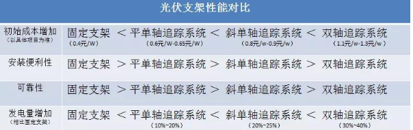支架端如何增效?目前行業的共識即采用追蹤系統,從初始投資成本增加幅度、故障率、可靠性、安裝便利性及發電量提升綜合考慮,相比斜單軸及雙軸追蹤系統,平單軸追蹤系統現階段具備大規模應用的優勢。