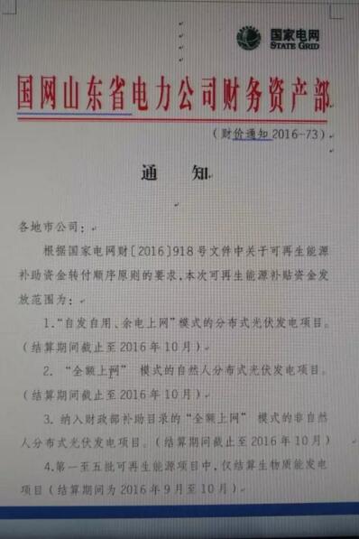 比如,之前小編報道的河北省石家莊400余戶光伏業主剛剛一次性拿到拖欠的補貼,這廂國網山東就下達通知:下發可再生能源補貼資金。文件圖片如下: