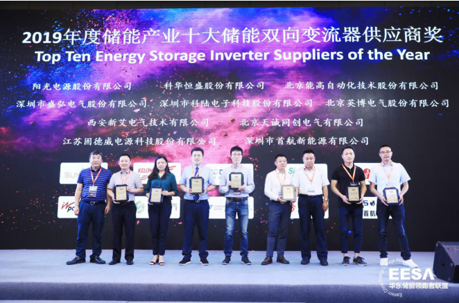 7月9日,由上海逍天電子科技有限公司和華東儲能領(lǐng)跑者聯(lián)盟(EESA)共同主辦2019第六屆中國國際光儲充大會在上海隆重開幕。科華恒盛以重點(diǎn)支持單位的身份受邀出席本次大會,并憑借出色的產(chǎn)品實(shí)力及成熟的項(xiàng)目應(yīng)用經(jīng)驗(yàn),在當(dāng)日舉行的光儲充行業(yè)年度頒獎盛典中,一舉攬獲“2019年度儲能產(chǎn)業(yè)十大儲能雙向變流器供應(yīng)商獎”“2019年度儲能產(chǎn)業(yè)最佳微電網(wǎng)應(yīng)用項(xiàng)目獎”兩項(xiàng)大獎。