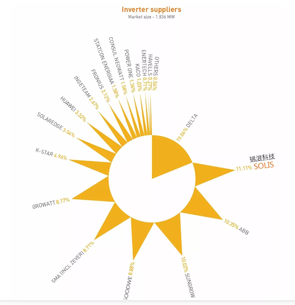 錦浪科技表現亮眼,成為印度逆變器供應商市場占比第二。