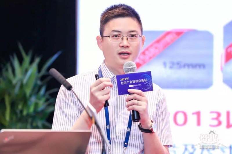 隆基綠能科技股份有限公司研發總監周銳作大尺寸硅片應用優勢與挑戰的報告。