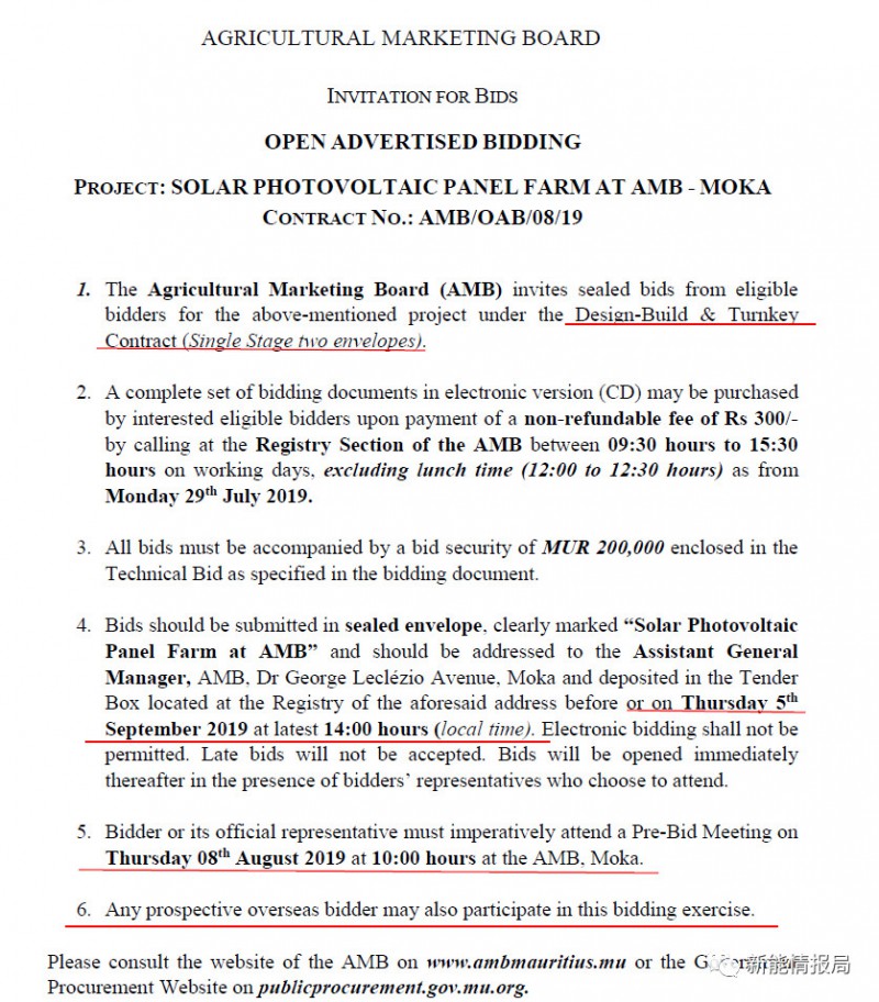 核心提示:毛里求斯光伏招標,9月5日截止.