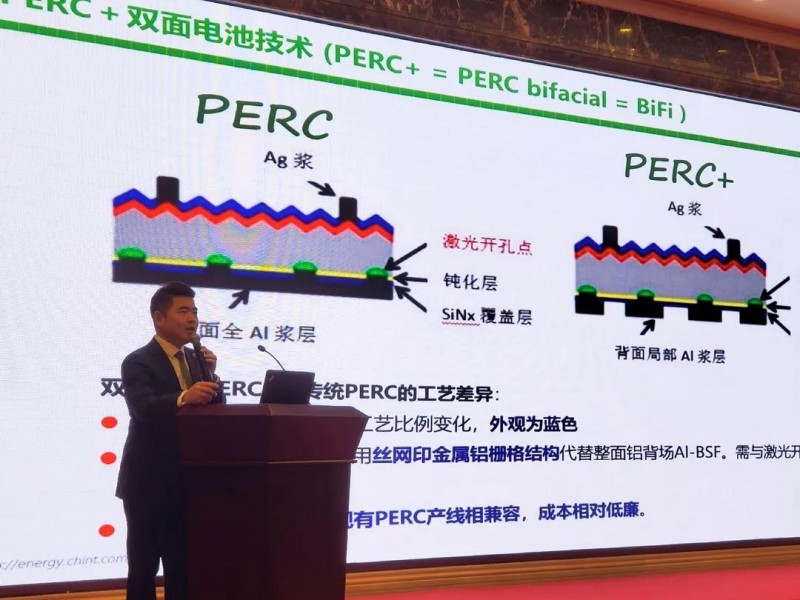 該會議聚集行業(yè)領(lǐng)先企業(yè),探討雙面PERC市場份額、先進(jìn)PERC技術(shù)的持續(xù)優(yōu)化、TOPCon技術(shù)及應(yīng)用前景、PERC產(chǎn)線升級鈍化接觸技術(shù)的工藝方案等。以正泰AstroTwins單晶半片雙面雙玻組件為例,徐博士介紹該產(chǎn)品應(yīng)用大尺寸硅片、SE+PERC技術(shù)、9BB及半片等新一代技術(shù)并合理配比實現(xiàn)高效和可靠兼具,最高功率直擊450W!經(jīng)過正泰研發(fā)團(tuán)隊的努力,目前雙面電池平均量產(chǎn)效率達(dá)22.55%,雙面率大于75%,后續(xù)優(yōu)化后電池效率將超過23%。