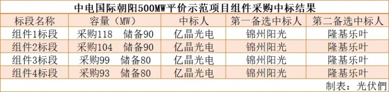 億晶光電以315Wp報價1.903元/瓦獨獲414MW組件訂單+340MW的組件優先采購權,第一、第二備選中標人分別為錦州陽光和隆基樂葉;