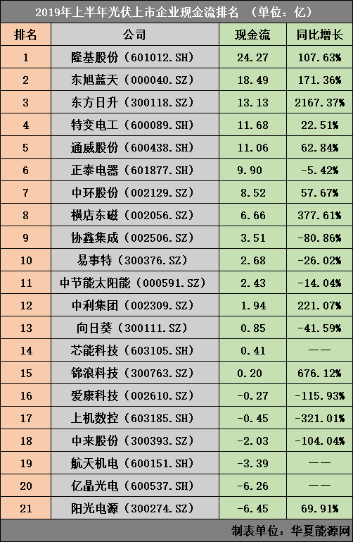 除此之外,共有15家企業的現金流為正;現金流為負的企業多為中小企業或在轉型之中的企業。通過現金流不難看出,光伏企業之間的投入差距,在未來或不斷拉大。
