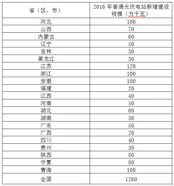 2016年6月3日,國家能源局正式發(fā)布2016年光伏發(fā)電建設(shè)實施方案:2016年下達(dá)全國普通光伏電站項目1260萬千瓦,對不具備新建光伏電站市場條件的甘肅、新疆、云南停止或暫緩下達(dá)2016年新增光伏電站建設(shè)規(guī)模(光伏扶貧除外);山東普通光伏電站新增建設(shè)規(guī)模全部用于光伏扶貧。