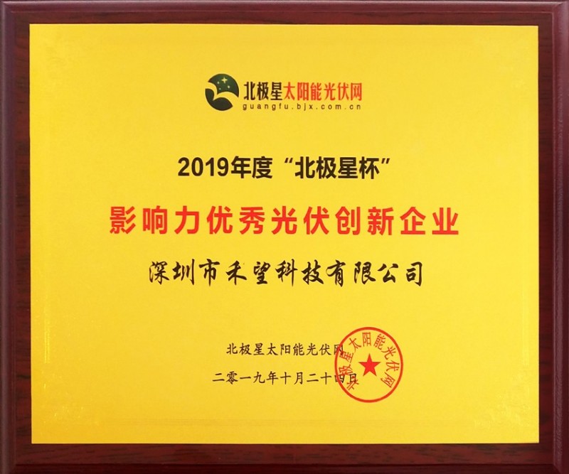 10月24日,禾望作為贊助單位應邀參加了北極星電力網承辦的2019光伏新時代論壇暨“北極星杯”光伏影響力品牌頒獎典禮。禾望憑借可靠的產品質量和豐富的項目應用經驗,在眾多光伏企業中脫穎而出,榮獲“影響力優秀光伏創新企業”及“影響力光伏逆變器品牌”兩項殊榮,這是對禾望出眾的實力和產品的又一次充分肯定。